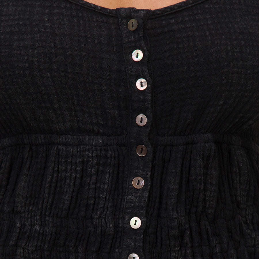 For moments when whimsy calls. the Lainey Mini Dress delivers. With its button-up charm and airy feel. it’s equal parts effortless and flirty??made to turn sidewalks into runways.