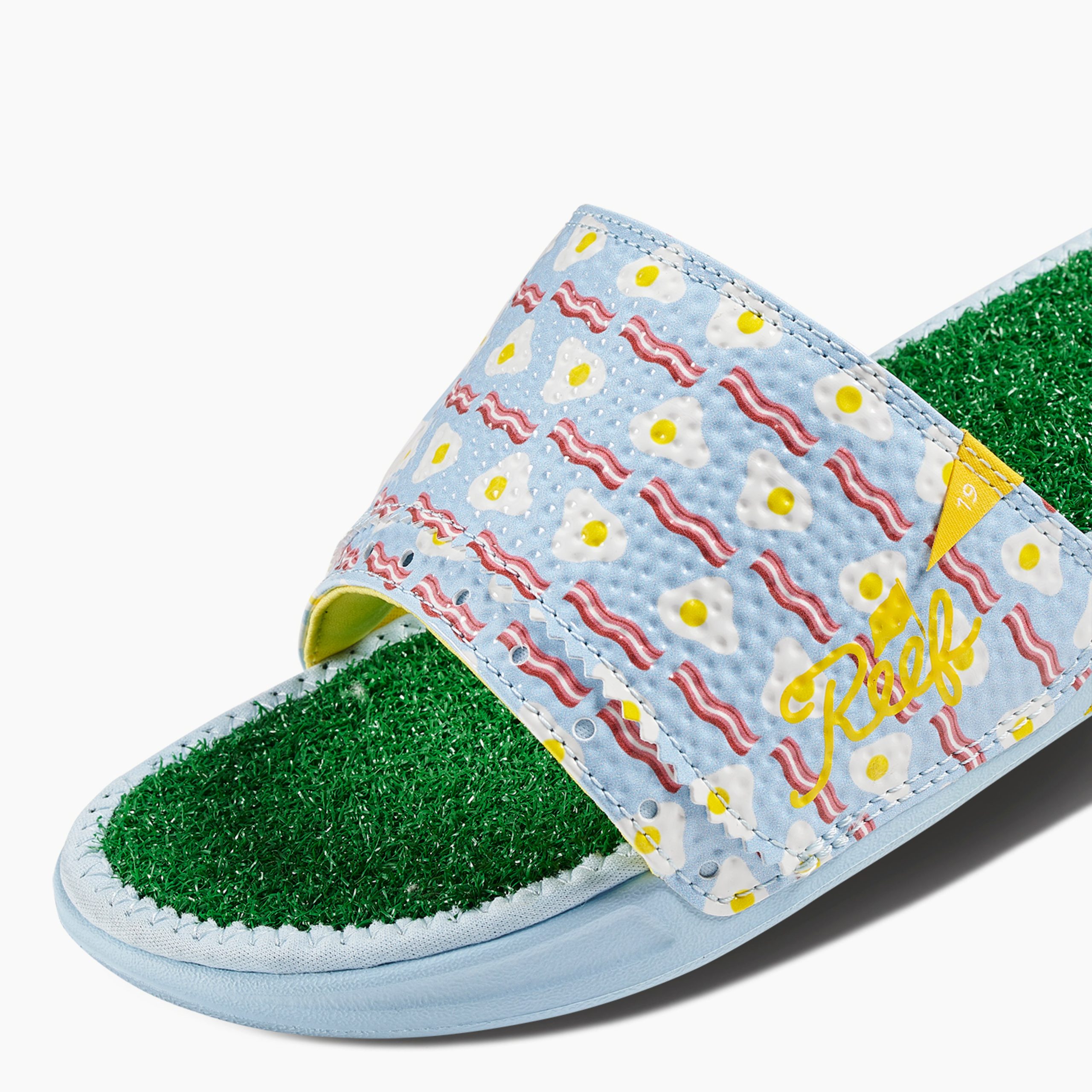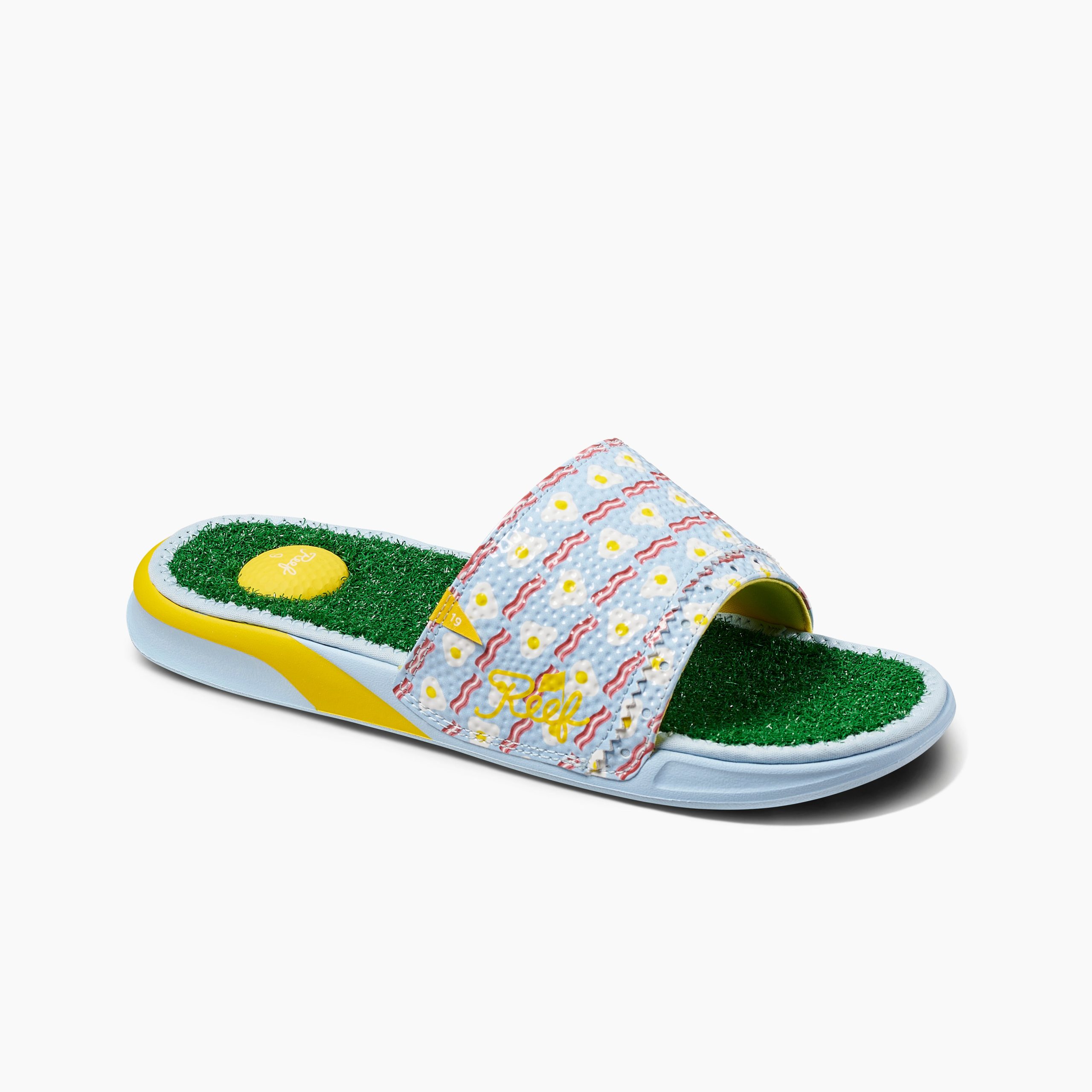 This is one decision you will not want to do over! The faux grass footbed. the golf ball heel pad. the built-in tee and the non-injection molded durable foam outsole — it’s a hole in one. Perfect for the locker room or grabbing that round of drinks after your round.