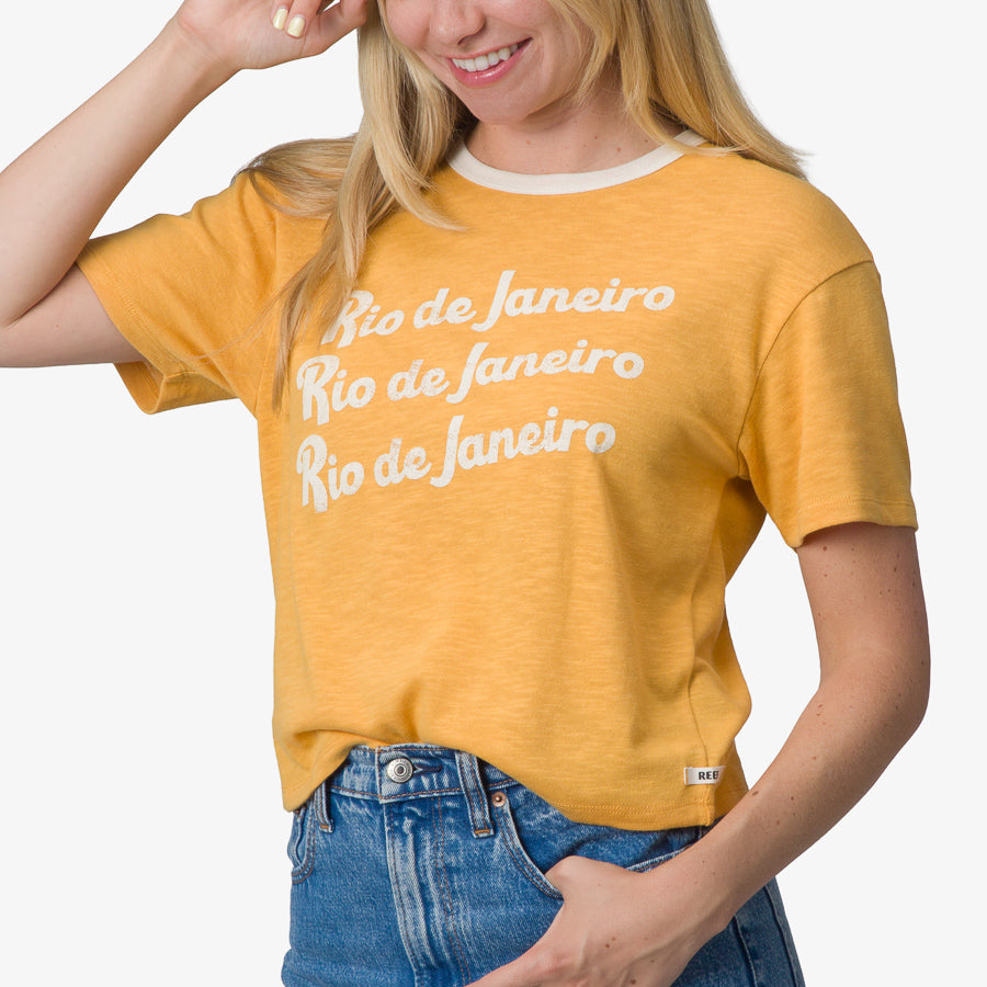 With South American soul and a retro twist. the Rio Ringer Tee invites you to carry the spirit of sunny beaches and bold beginnings??wherever you go.