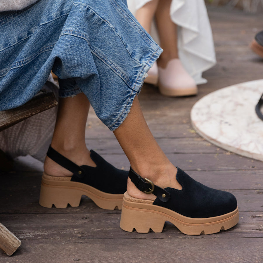 The comfort of a clog. the polish of a platform. The Vista Luxe Solene’s a fresh. elevated silhouette that brings the comfy ease of your favorite closed-toe style and the chic confidence that we love in a Vista. Her luxury comfort footbed. adjustable metal buckle strap. and durable lug bottom are versatile from brunches in denim to dinners in breezy dresses. Wherever the day (or night) takes you. feel stable. stylish. and effortlessly put together with Solene.